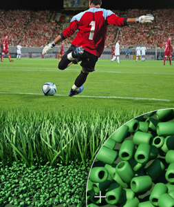 The performance polymer infill consists of elastomeric granules made of thermoset rubbers or specially designed Thermoplastic Elastomers (TPE).